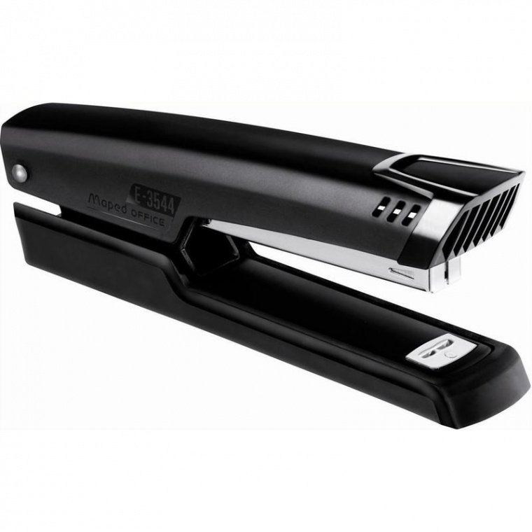 Степлер средний Maped Essentials полноразмерный, одновременно сшивает до 25 листов: плотность 80 г/кв.м — 20 листов, плотность 70 г/м.кв. — 25 листов. Позволяет производить сшивание закрытым способом. Максимальная глубина закладки бумаги составляет 84 мм (8,4 см). Полностью металлический корпус и механизм, металлический толкатель. Функция taking (корпус открывается на 180 градусов). В степлере используются скобы № 24/6, 26/6. Вместимость скоб: 150 шт 24/6 или 200 шт 26/6. Размер изделия: ДхШхВ 197×39×68 мм. Цвет черный. Гарантия 5 лет.