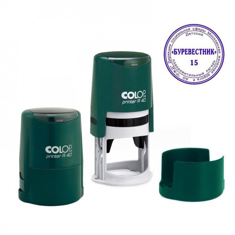Оснастка для круглой печати Colop R40 с крышкой. Нижняя крышка позволяет блокировать корпус в сложенном компактном виде, защищает клише. Используется для основных или дополнительных печатей организации. В комплекте: оснастка, нижняя крышка, синяя сменная подушка E/R40. Площадка под клише имеет диаметр 41,5 мм, что облегчает крепление клише диаметром 40 мм — его приклеивание не точно по центру не будет критичным. Цвет корпуса — паприка (зеленый). Клише заказывается отдельно.