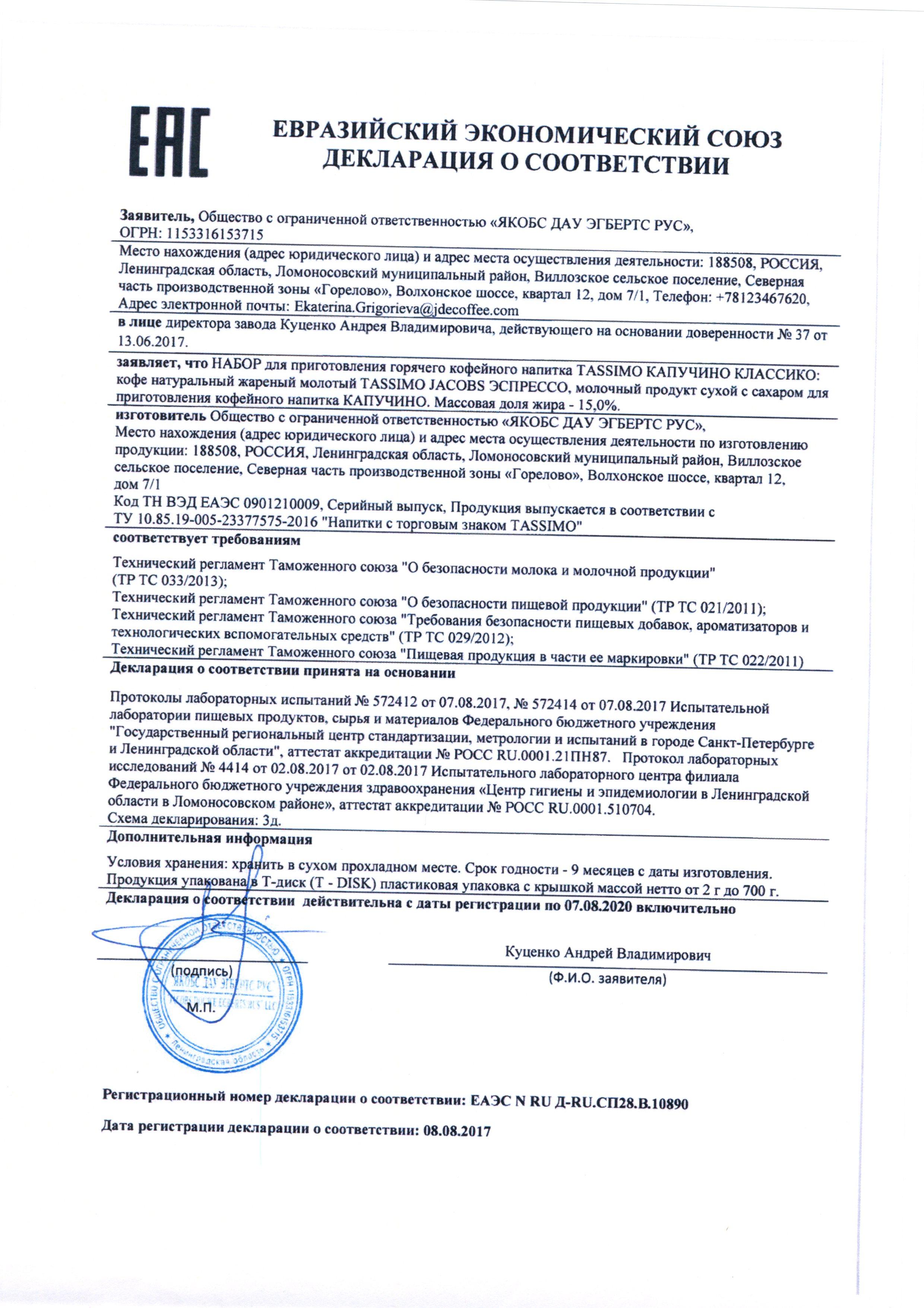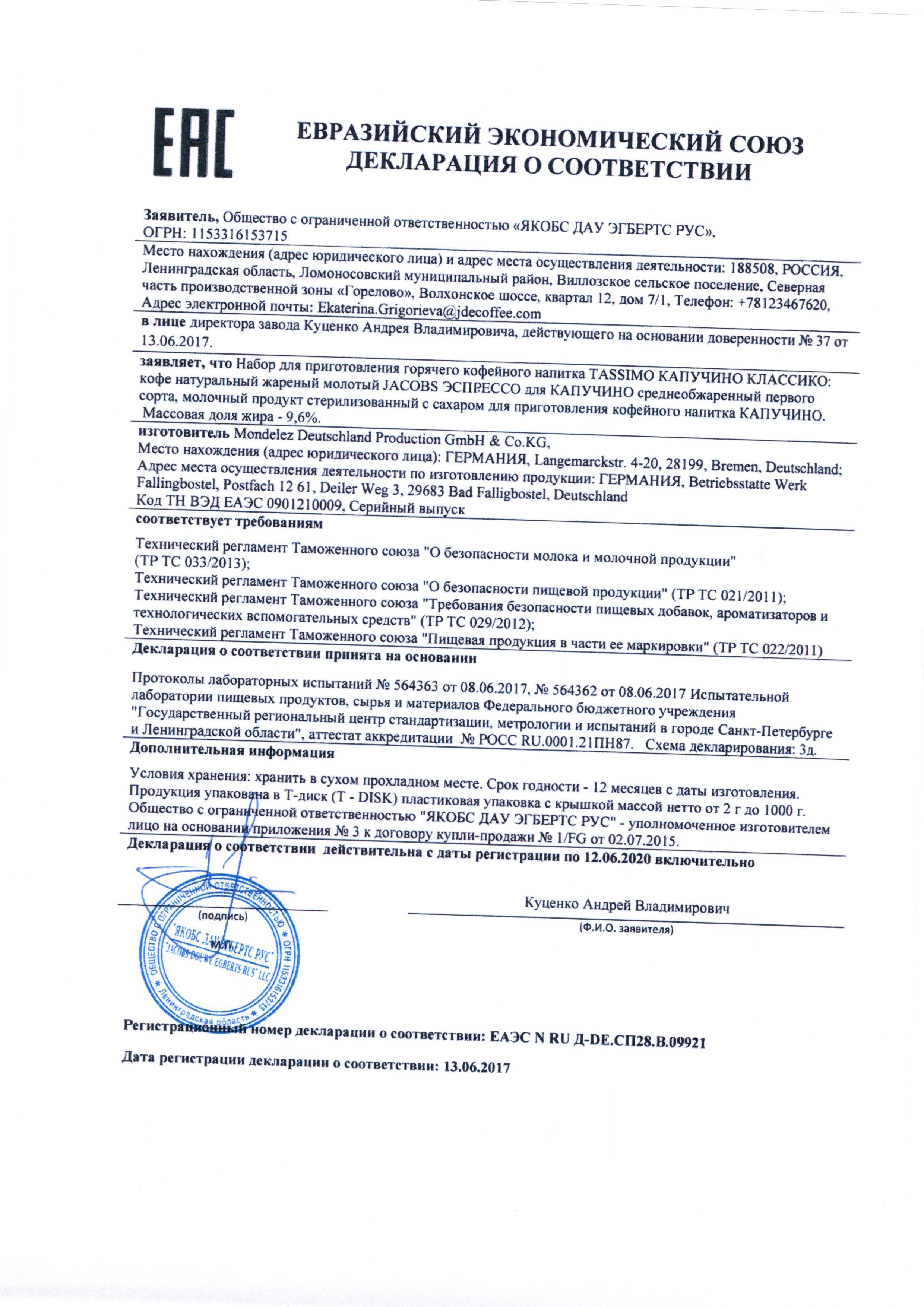 Способ приготовления: приготовить с помощью кофемашины Tassimo.
