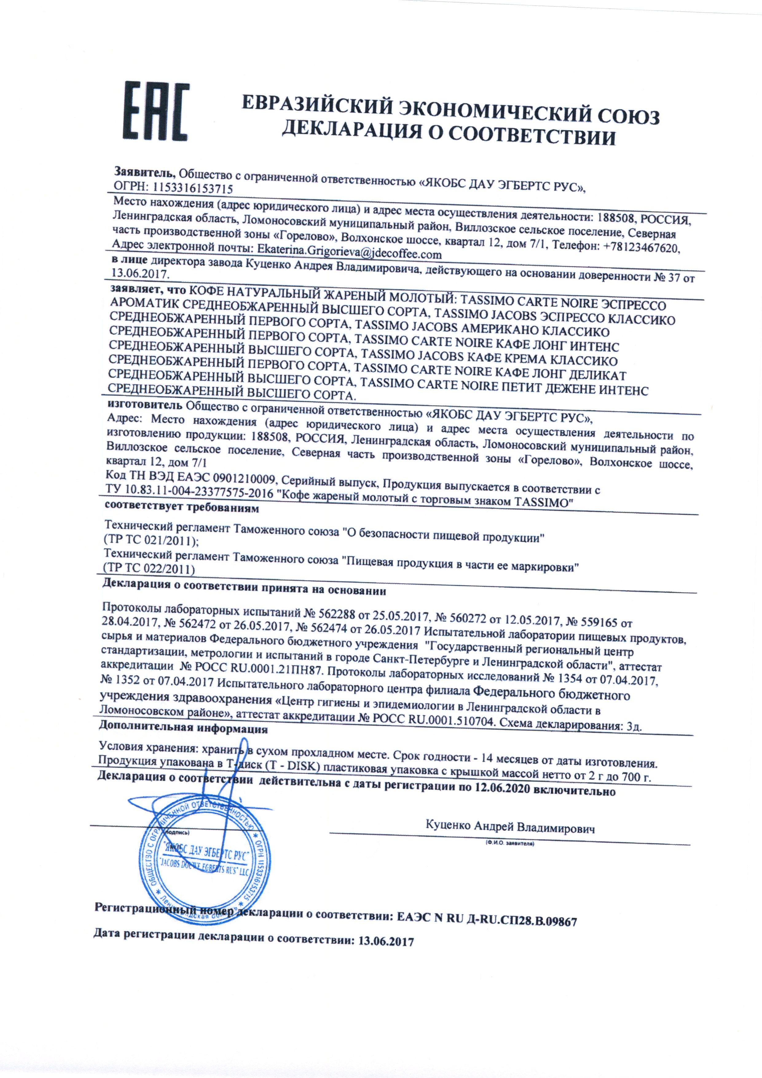 Состав: капсула с жареным молотым кофе.