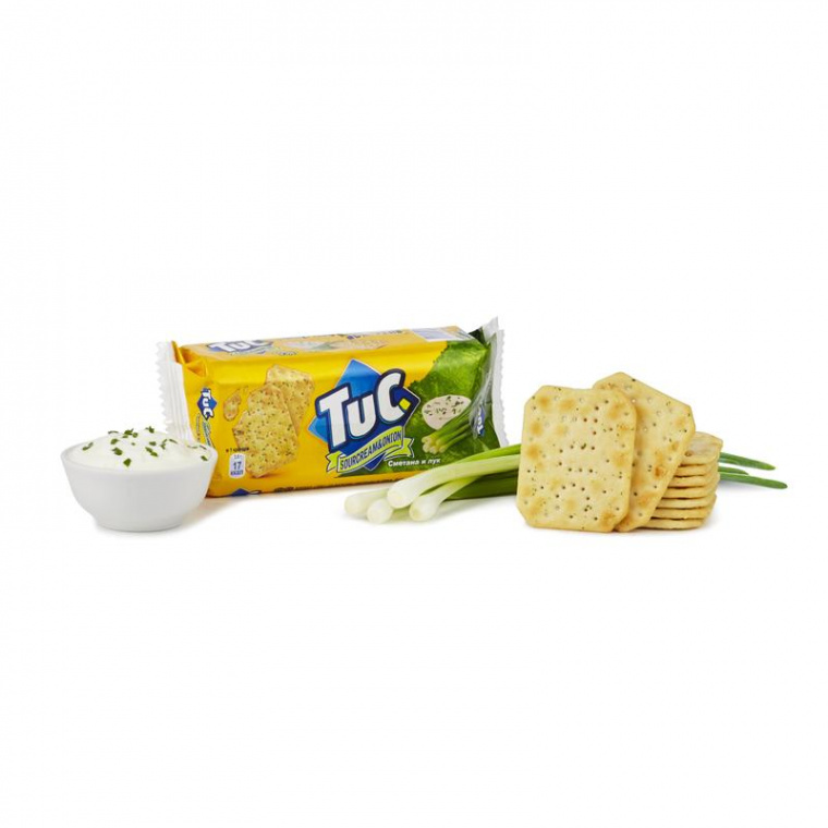 Крекер Tuc со вкусом сметаны и лука 100 г — один из самых популярных вариантов крекеров, который пришелся по душе многочисленным любителям быстрых перекусов на ходу. Тонкое и легкое печенье аппетитно хрустит и моментально тает во рту, оставляя яркое послевкусие сметаны и лука.