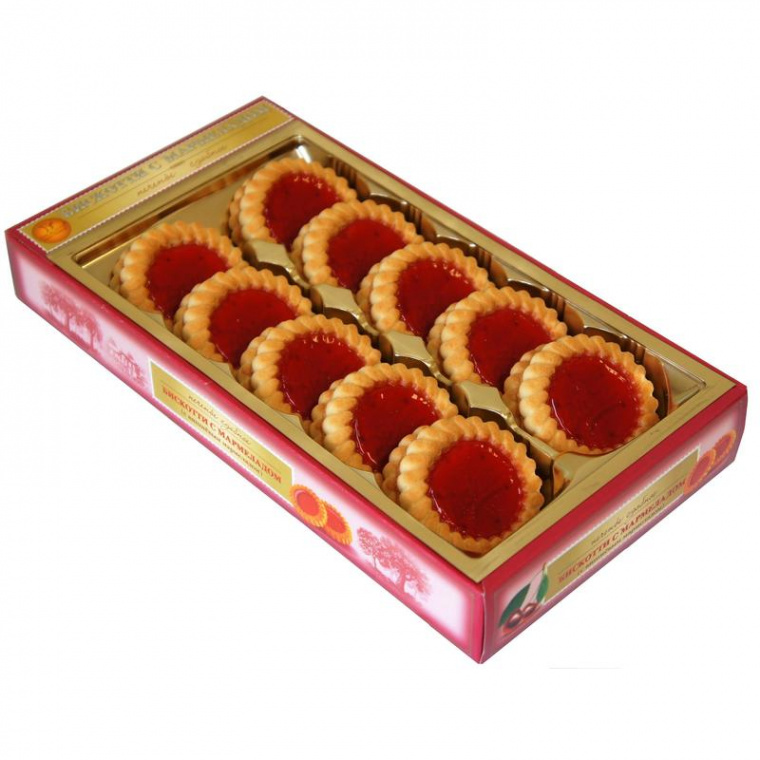 Печенье сдобное «Бискотти» с вишневым мармеладом — изумительное печенье с хрустящей сдобной основой и ароматным вишневым мармеладом, сваренным из натурального фруктового сока. Утонченная кислинка вишни безупречно гармонирует с рассыпчатой выпечкой и тонким слоем шоколада, даря приятные эмоции от наслаждения ярким десертом.