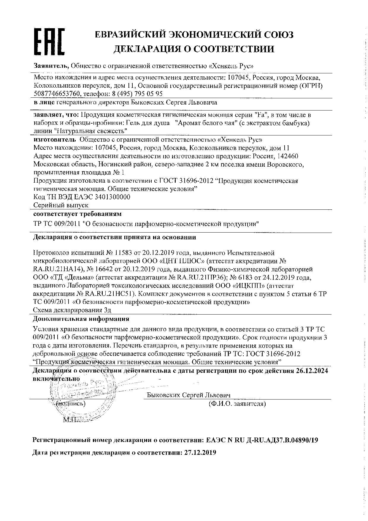 Формула мягкого ухода. С природным экстрактом белого чая. Испытайте новые, свежие ощущения с гелем для душа Fa. Забота природы подарит Вашей коже ощущение бережного ухода каждый раз, когда Вы принимаете душ с Fa. Кристально прозрачная формула геля с экстрактом белого чая и ухаживающим витамином освежает тело, даря вашей коже ощущения чистоты и нежности. Аромат природного чая и бамбука поднимет Вам настроение. рН - нейтральный. Хорошая переносимость кожей подтверждена дерматологами.