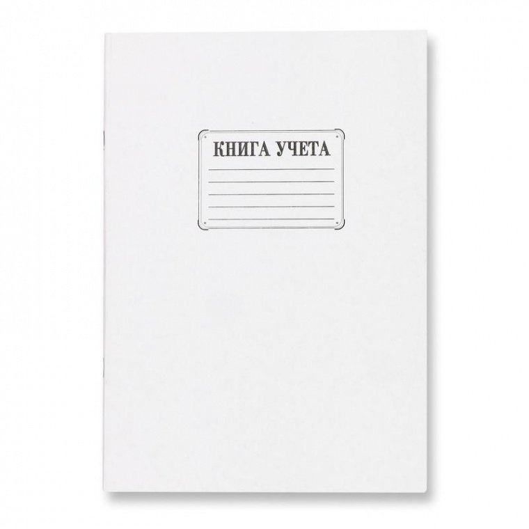 Бухгалтерская книга учета (формат А4). Обложка изготовлена из картона белого цвета. Внутренний блок — офсетная бумага, 48 листов в клетку. Способ крепления — скрепки.