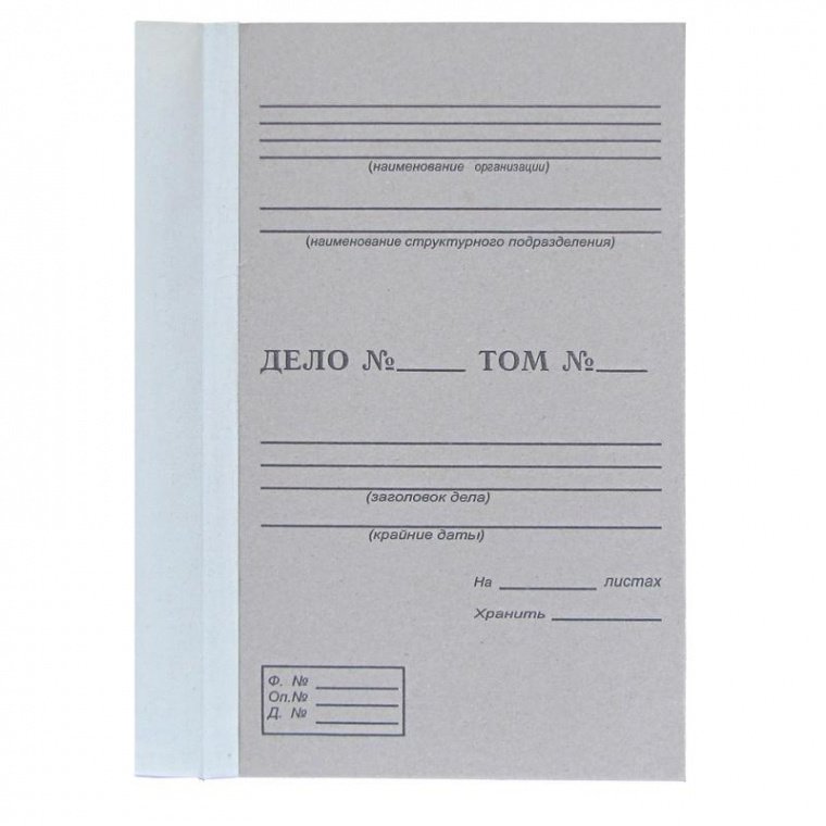 Папка для переплета изготовлена из переплетного картона бежевого цвета. Предназначена для сшивания документов. Максимальная толщина дела составляет 40 мм (около 350 листов стандартной плотности).