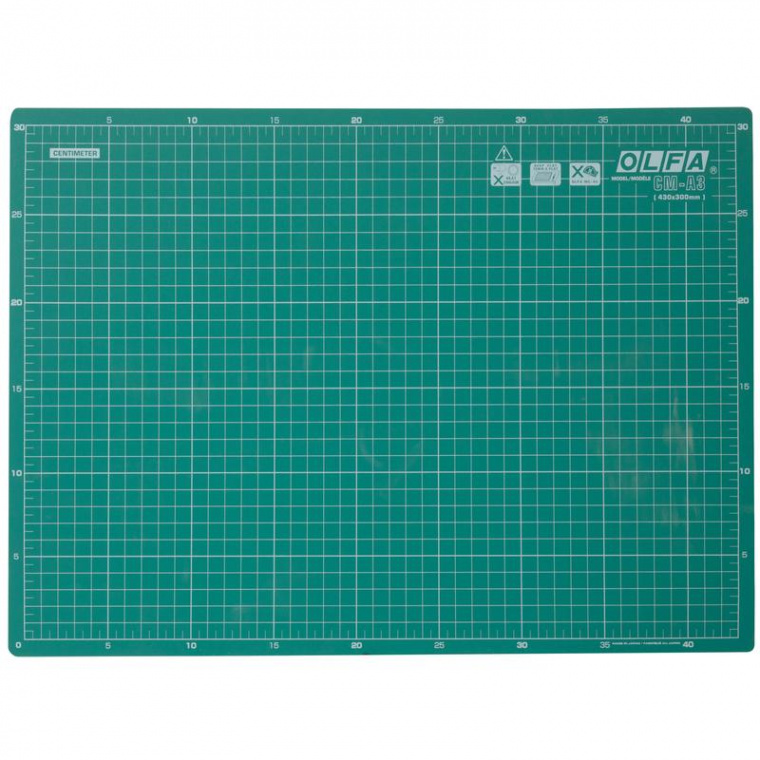 OLFA OL-CM-A3 это двусторонний самовосстанавливающийся коврик применимый в работе с ножами OLFA стандартными, высокопрочными, специальными (кроме некоторым моделей) и вращающимися.