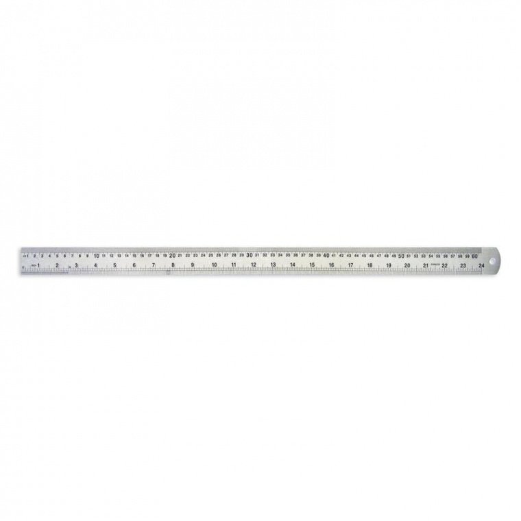 60-сантиметровая линейка Attache выполнена из стали. Линейка применяется для чертежных и измерительных работ и имеет двойную градацию шкалы (сантиметр, дюйм). Толщина линейки −1 мм. Ширина линейки — 28.6 мм.