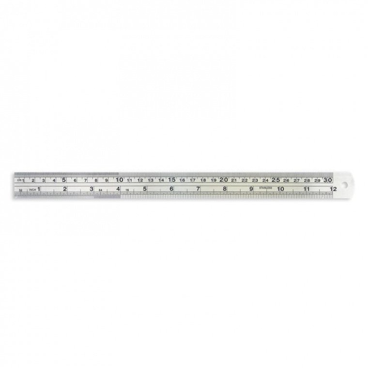 30-сантиметровая линейка Attache выполнена из стали. Линейка применяется для чертежных и измерительных работ и имеет двойную градацию шкалы (сантиметр, дюйм). Ширина линейки 25 мм. Толщина стали — 0,8 мм.