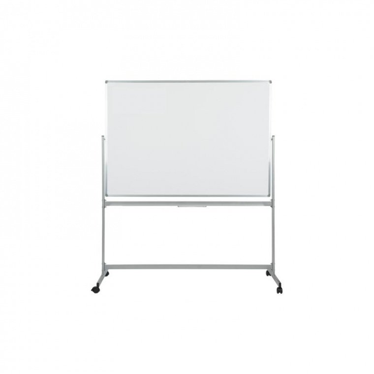 Доска магнитно—маркерная 100×150 см, вращающаяся на 360 градусов, на роликах, с лаковым покрытием. Простой и удобный узел фиксации позволяет установить полотно доски под произвольным углом. Размер полочки для маркеров — 40×5 см.