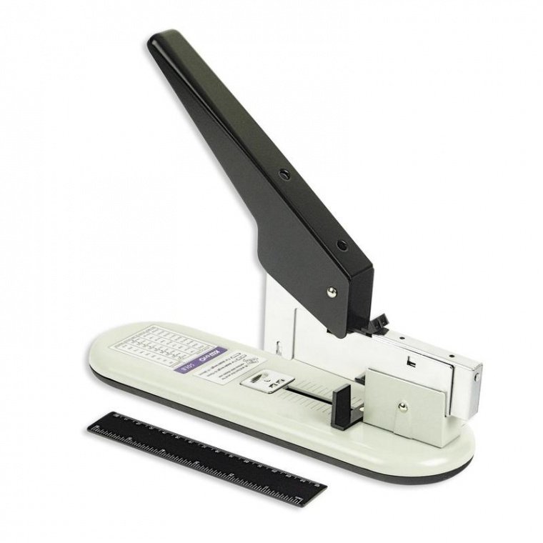 Мощный степлер KW-Trio 50LB с максимальной толщиной сшивания бумаги до 210 листов. Глубина закладки листов регулируется от 7 до 65 мм. Пластиковая основа степлера не царапает поверхность стола и предотвращает скольжение. Тип и размер используемых скоб — N23/6, 23/8, 23/10, 23/13. Загрузка скоб в степлер осуществляется фронтально. Размер: 302×195×96 мм. Вместимость скоб — 100 штук.