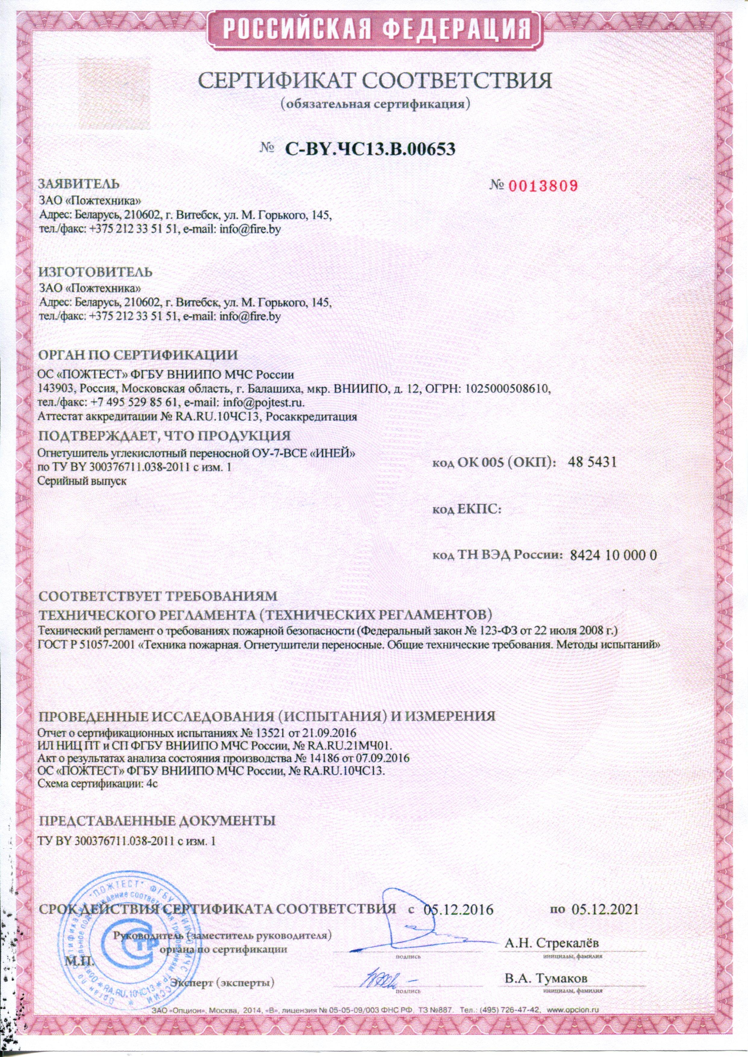 Производитель: «Пожтехника» Беларусь.