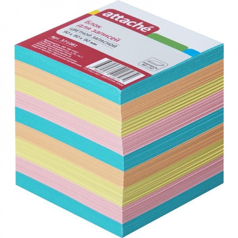 Блок для записей Attache 90x90x90 мм разноцветный (плотность 80 г/кв.м)