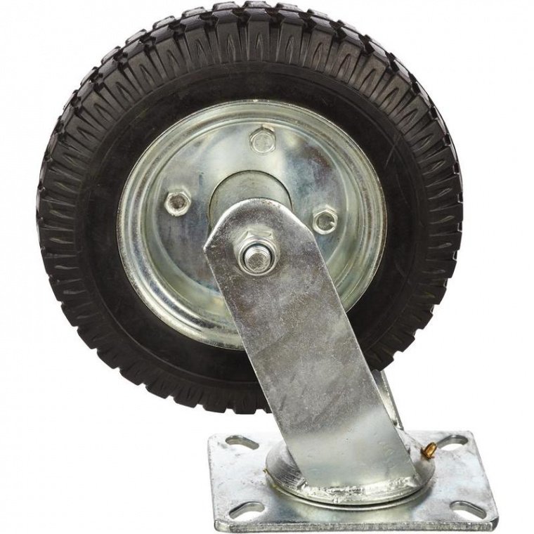 Колесо большегрузное поворотное, пневматическое Покрышка пневматического колеса состоит из резиновой шины с прессованным ободом и внутренней трубкой, монтируемой к центру колеса. Колесо оснащено двумя шариковыми подшипниками. Температурный диапозон эксплуатации от - 20 С до + 50 С