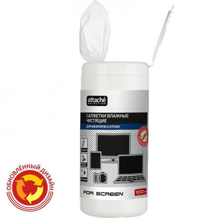 Салфетки влажные Attache Selection For Screen для экранов (100 штук в тубе)