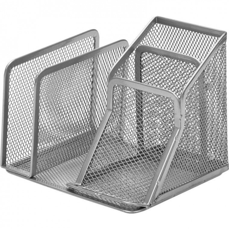 Подставка для письменных принадлежностей и писем Attache (4 секции, металлическая сетка, 145х130х128 мм, серебро)