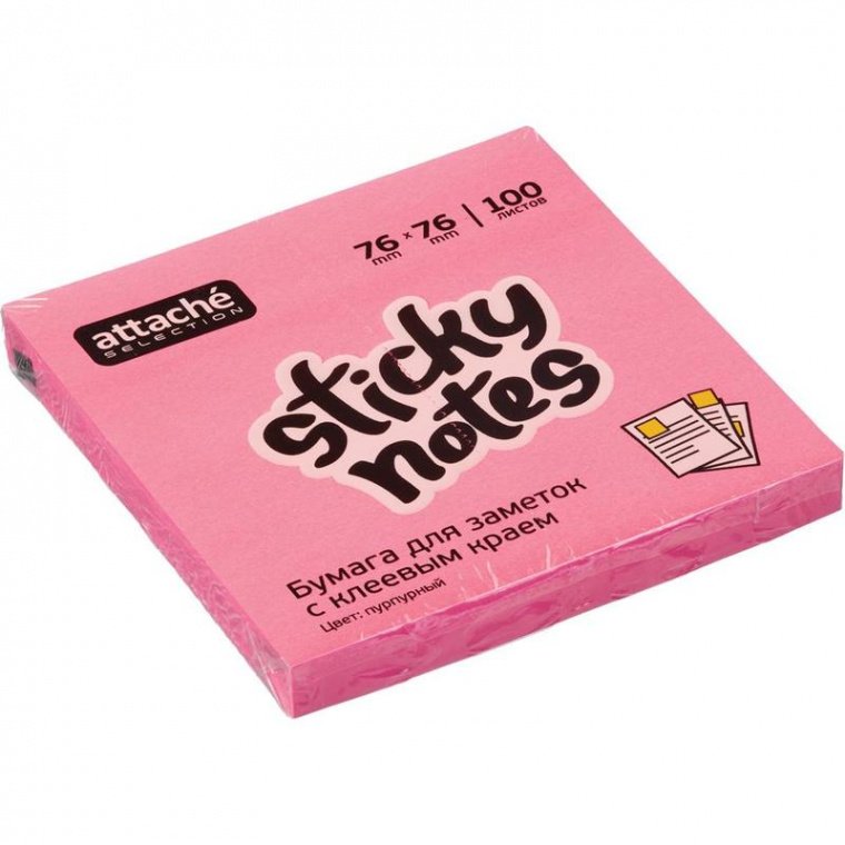 Стикеры Attache Selection в формате 76×76, пурпурного цвета, 100 листов. Идеально подойдут для сотрудников творческих профессий и руководителей: рекомедуются для использования в процессе совещаний, обучения, мозговых штурмов. Тон стикеров — неоновый. Плотность бумаги: 75-80 г/кв.м. клейкий слой — 22 Н/м. Длина клейкой стороны 76 мм.