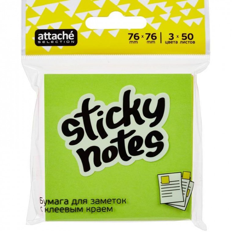Стикеры Attache Selection в формате 76×76 мм, состоят из 50 листов в каждом блоке (всего 150 листов). Стикеры 3-ех цветов (желтый, розовый, зеленый). Идеально подойдут для сотрудников творческих профессий и руководителей: рекомедуются для использования в процессе совещаний, обучения, мозговых штурмов. Тон стикеров — неоновый. Плотность бумаги: 75-80 г/кв.м. клейкий слой — 22 Н/м. Длина клейкой стороны 76 мм.
