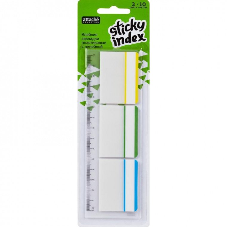 Клейкие закладки Attache Selection пластиковые 3 цвета по 10 листов 37x50 мм на линейке
