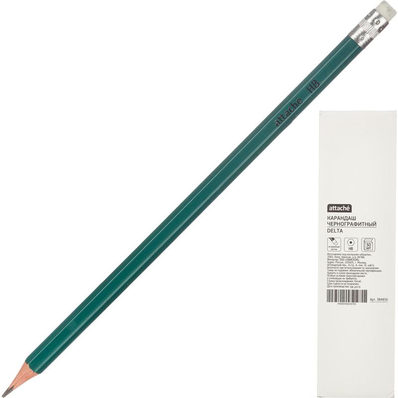 Шестигранный корпус карандаша изготовлен из пластика, оснащен ластиком. Карандаш легко точится и не крошится. Поставляется заточенным. Твердость грифеля — НB. Цвет корпуса — зеленый. В упаковке 144 штук.