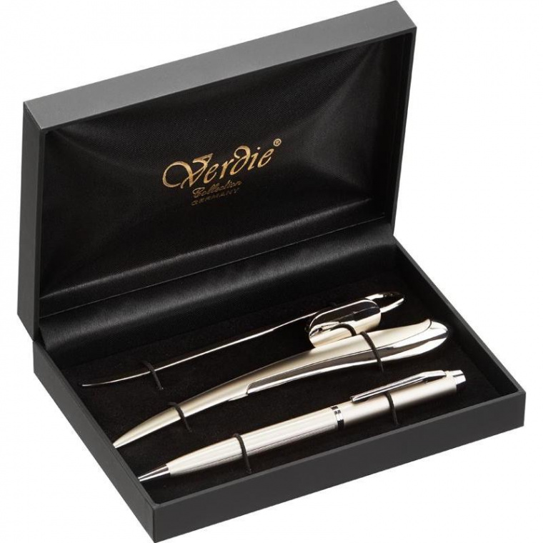 Подарочный набор из коллекции Verdie отлично подойдет в качестве презента для коллеги в офисе, также в качестве корпоративного презента или на день рождения знакомому. В набор входит шариковая ручка, закладка для книг, нож для бумаги. Ручка выполнена из стали с матовым покрытием и хромированными деталями. Толщина линии письма 0.5 мм. Стержень меняется — шариковый тип Cross синий 116 мм (толщина линии 0.5 мм). Благодаря возможности гравировки на ручке этим набором вы подчеркнете значимость и свое отношение к тому, для кого предназначен этот презент. Закладка и нож для бумаги изготовлены из стали с матовым покрытием. Набор поставляется в подарочном футляре. Размер: 155×115×35 мм. Страна производства — Китай.