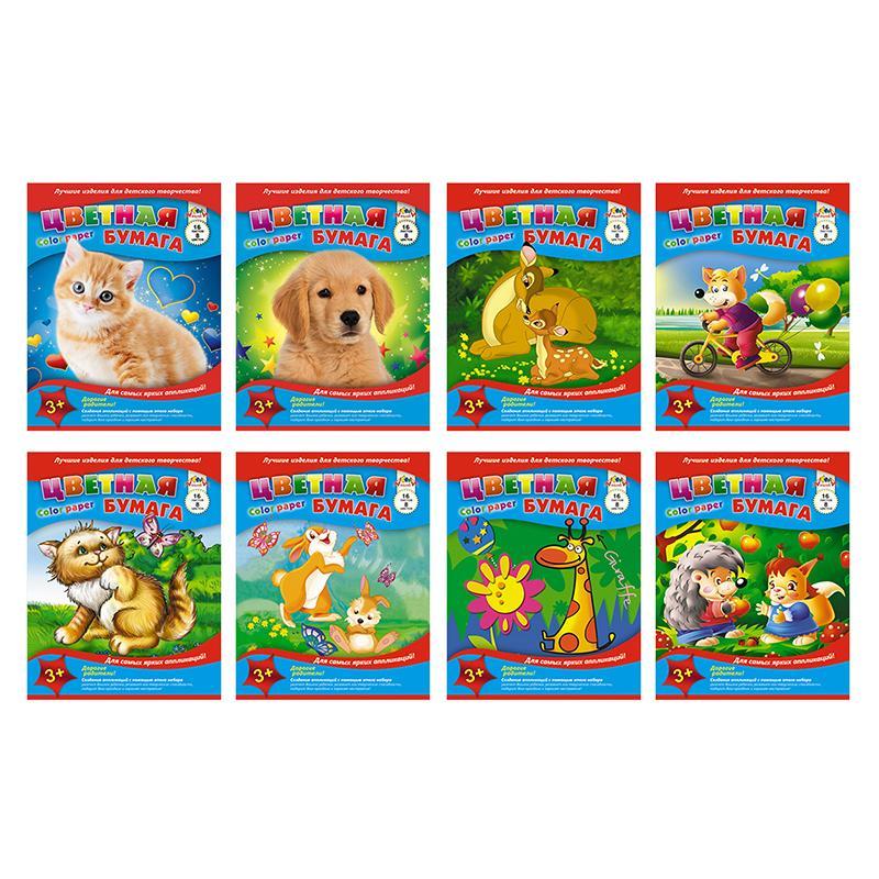 Бумага цветная Апплика (А4, 16 листов, 8 цветов, офсетная)