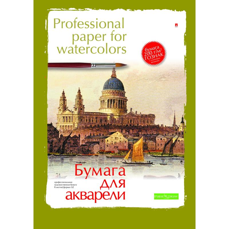 Папка для акварели формата А2 (420*594 мм. Восемь идеально белых листов сделаны из бумаги фабрики Гознак. Листы плотностью 200 г/кв м отлично удерживают красящий пигмент за счет добавления специального хлопкового волокна в бумажную массу при производстве. Стильная картонная папка плотностью 300 г/кв м не даст листам помяться при транспортировке. В папке, украшенной архитектурным ансамблем старинного европейского города, также удобно хранить готовые рисунки.