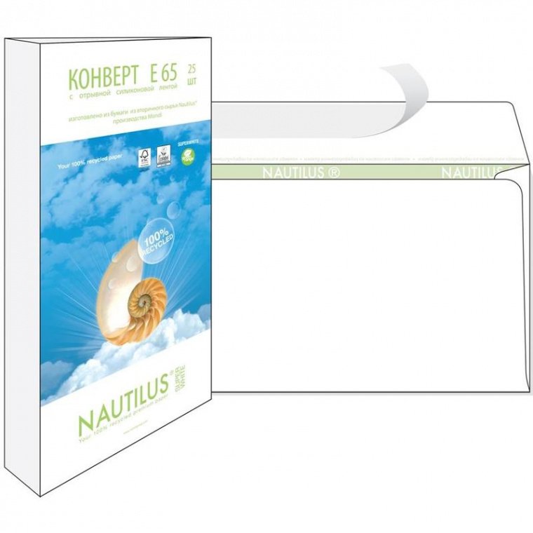 Конверт Е65, 110×220 мм, без окна, зеленая внутренняя запечатка с логотипом Nautilus. Изготовлен из бумаги Nautilus плотностью 80 г/кв.м. У конверта есть внутренняя запечатка с логотипом, а также надпись про вторсырье (находится с внутренней стороны клапана). Показатель белизны бумаги — 102. 5-111. 5 %. Экологически чистый продукт, изготовленный из 100% вторичного сырья. Nautilus сочетает в себе высокое качество и экологичность. Значение вторично переработанного сырья. Во-первых, ресурсы многих материалов на Земле ограничены и не могут быть восполнены в сроки, сопоставимые со временем существования человеческой цивилизации. Во-вторых, попав в окружающую среду, материалы обычно становятся загрязнителями. В-третьих, отходы и закончившие свой жизненный цикл изделия часто (но не всегда) являются более дешевым источником многих веществ и материалов, чем источники природные. Предназначены для пересылки 6 листов А4 формата сложенных втрое, что равно 30 гр.веса.