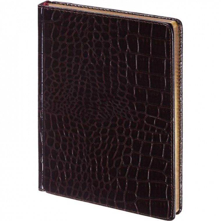 Ежедневник недатированный Альт. Коллекция Caiman. Формата А5, размер изделия — 145×205 мм. Прострочка периметра обложки. Закругленные уголки обложки и блока. Глянцевая темная обложка из качественной искусственной кожи имеет фактуру «под крокодила». Уголки обложки и блока имеют закругленную форму, обрез окрашен под золото. Блок: недатированный, 136 листов (272 страницы) белой бумаги плотностью 70 г/кв.м. Шелковая закладка. Справочная информация — 14 страниц, телефонная книга — 18 страниц.