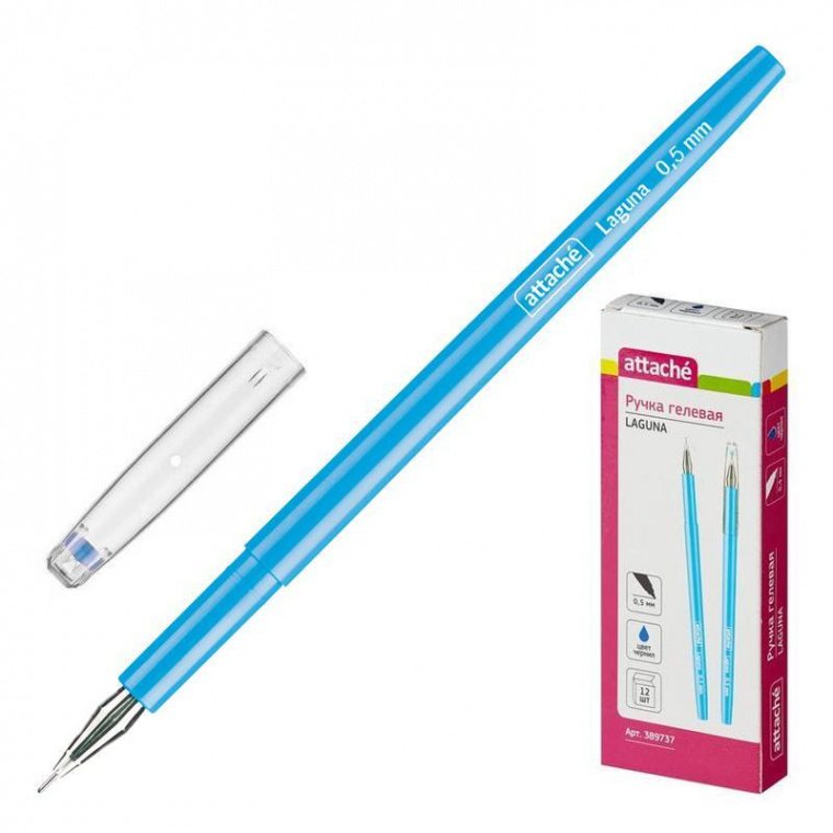 Гелевая ручка Attache Laguna с необычным пишущим узлом в форме кристалла. Матовый непрозрачный пластиковый корпус, чернила «морского» оттенка — синие. Игольчатый наконечник обеспечивает сверхтонкое письмо — 0,5 мм. Диаметр шарика составляет 0,5 мм. Ручка неавтоматическая, одноразовая.