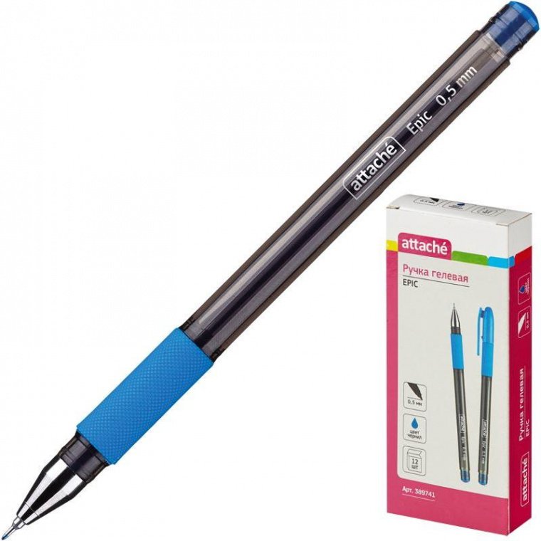 Гелевая ручка Attache Epic (<Эпик>) с удобной резиновой манжеткой. Классический дизайн. Идеально подходит как для офиса, так и для школы. Игольчатый наконечник обеспечивает сверхтонкое письмо. Пластиковый полупрозрачный корпус. Резиновая манжетка. Толщина письма — 0,5 мм. Неавтоматическая. Цвет манжетки соответствует цвету чернил. Дизайн ручки может незначительно отличаться (оттенок колпачка и манжетки, расположение надписей на корпусе) в зависимости от партии поставки.
