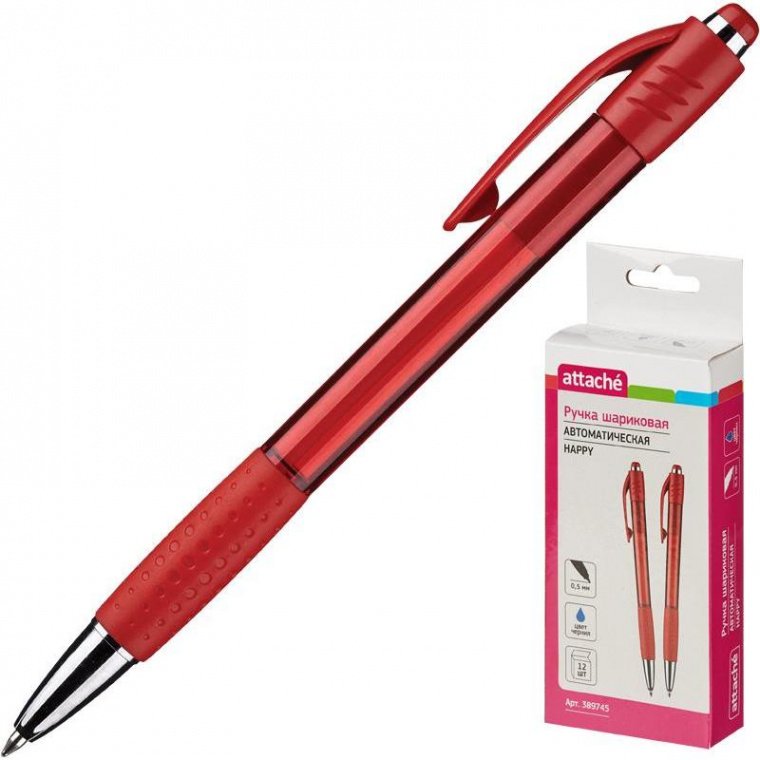 Автоматическая шариковая ручка Attache Happy в традиционном пластиковом корпусе с яркой резиновой манжеткой. Уникальное сочетание стиля и качества! Автоматический механизм. Резиновая манжетка. Пластиковый полупрозрачный корпус. Размер ручки: 138×10 мм. Толщина письма — 0,5 мм. Многоразовая. Цвет корпуса: красный. Цвет чернил — синий.