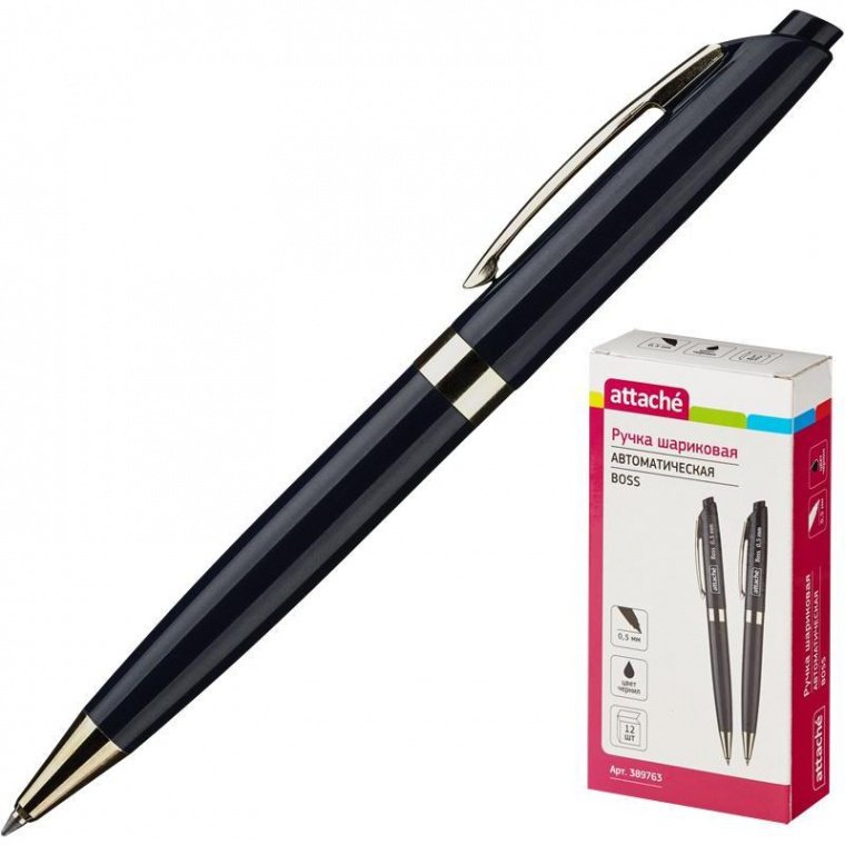 Автоматическая шариковая ручка Attache Boss ("Босс"). Сдержанный строгий дизайн. Классика делового стиля. Автоматический механизм. Пластиковый корпус. Толщина письма - 0,5 мм. Многоразовая. Цвет корпуса соответствует цвету чернил.