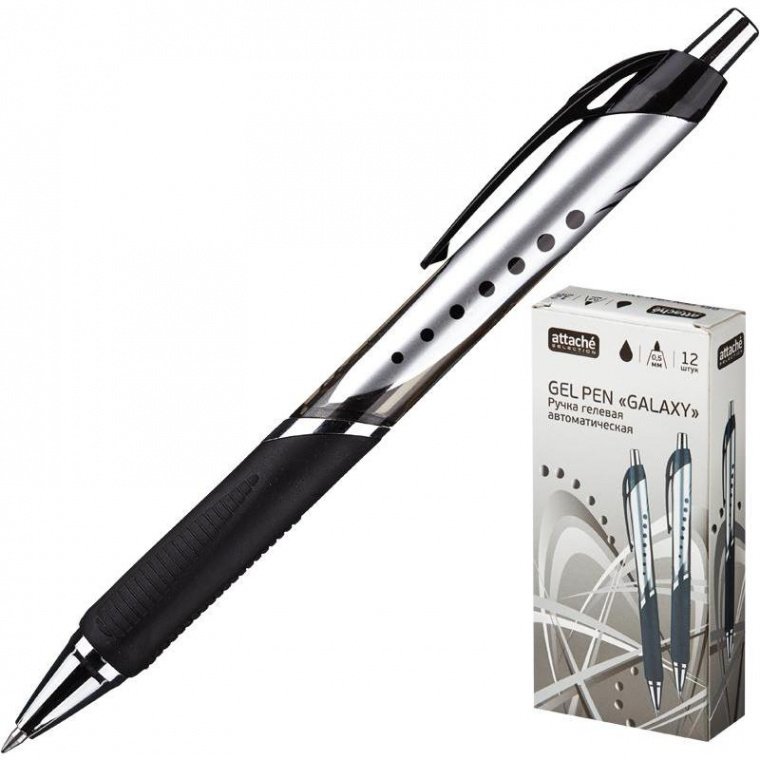 Ручка гелевая автоматическая Attache Selection Galaxy черная (толщина линии 0.5 мм)