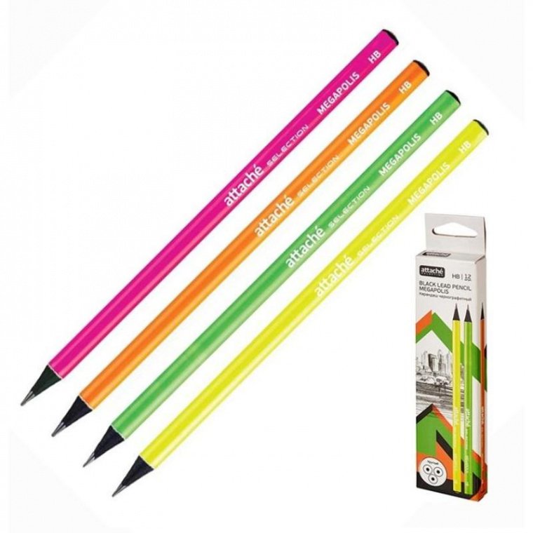 Карандаш чернографитный Attache Selection Megapolis в круглом деревянном корпусе. Оригинальный неоновый корпус подчеркивается черным цветом. Многослойное лаковое покрытие с шелковистым эффектом. Поставляется заточенным, не снабжен ластиком. Твердость грифеля — HB. Легко затачивается.