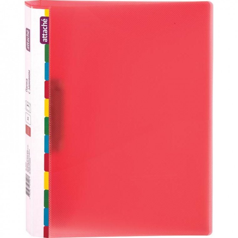 Папка с зажимом Attache Diagonal оригинального дизайна, вмещающая до 150 листов бумаги формата А4. Обложка, изготовленная из полипропилена толщиной 0,6 мм, украшена диагональными полосками. Цвет красный. Шарина корешка — 17 мм. Папка оснащена металлическим зажимом.