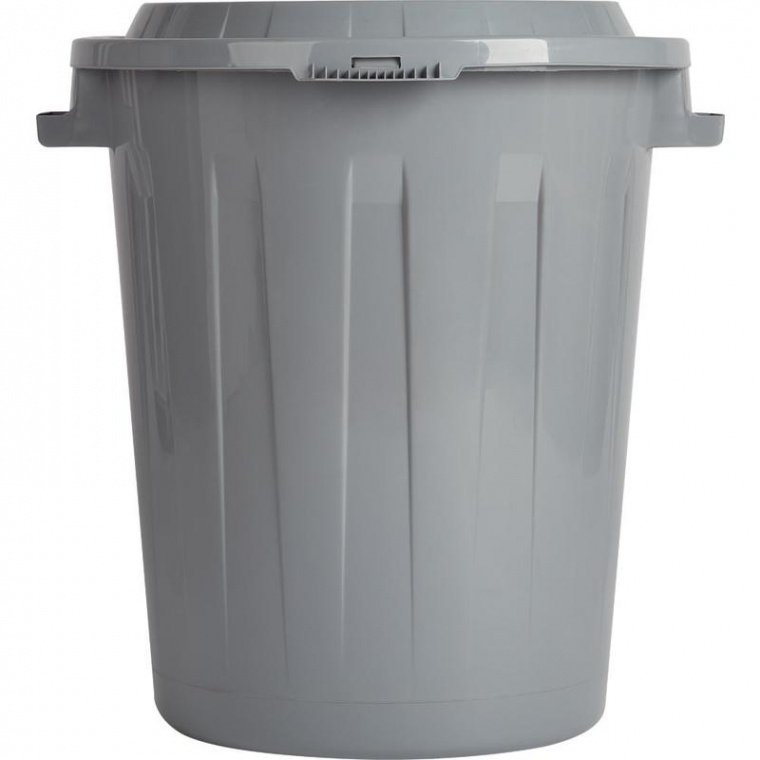 Пластиковый бак для отходов емкостью 90 литров выполнен из безопасного пищевого пластика серого цвета. Бак вместителен, прочен, устойчив к ударам, легко очищается, не сохраняет нежелательных запахов. Съемная крышка бака обеспечивает плотное закрывание. Для удобства переноски есть ручки. Изделие можно использовать как емкость для хранения овощей, фруктов, сыпучих продуктов, воды, на дачных участках для хранения поливочной воды, мусора, компоста, в качестве емкости для сыпучих строительных материалов.