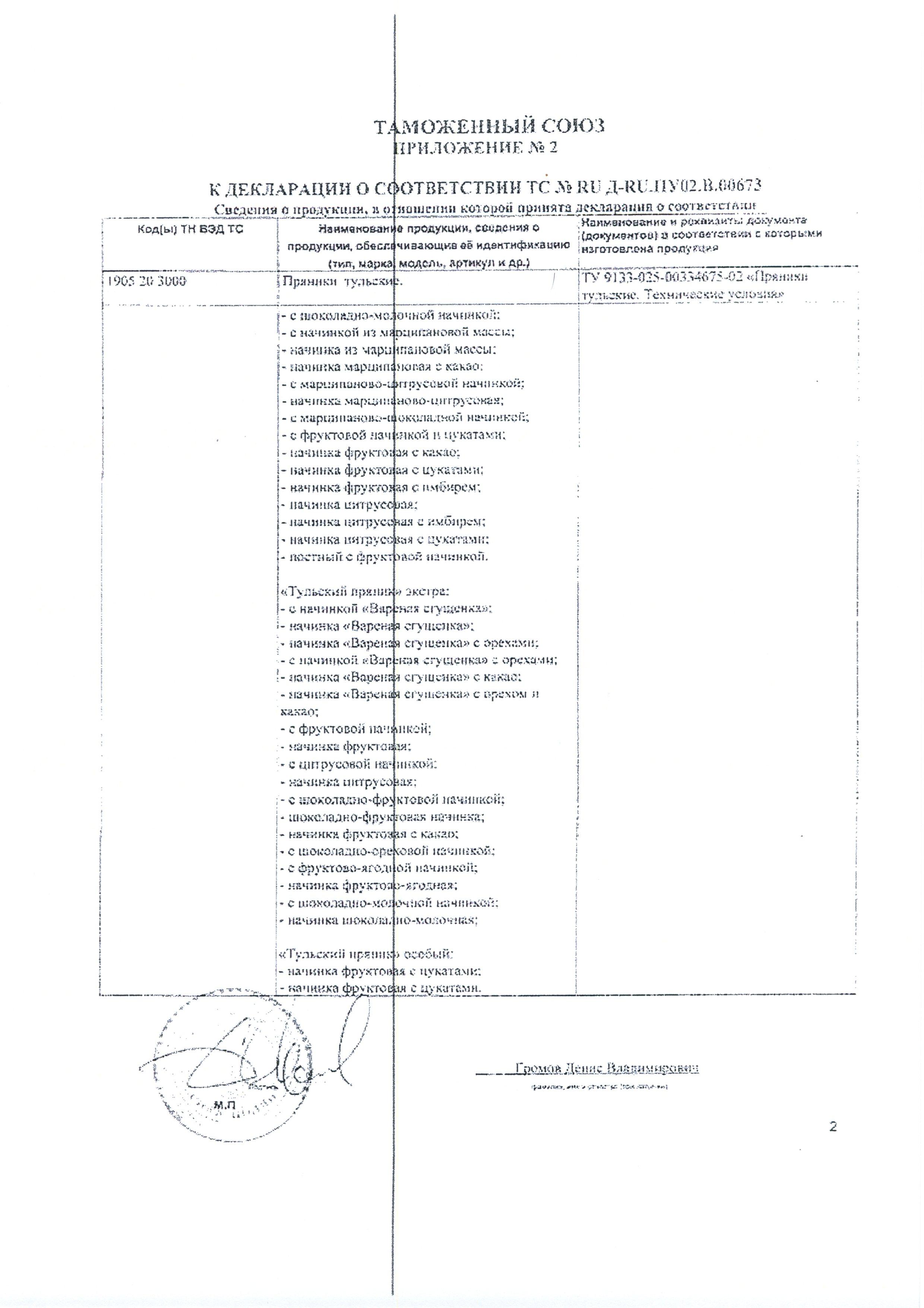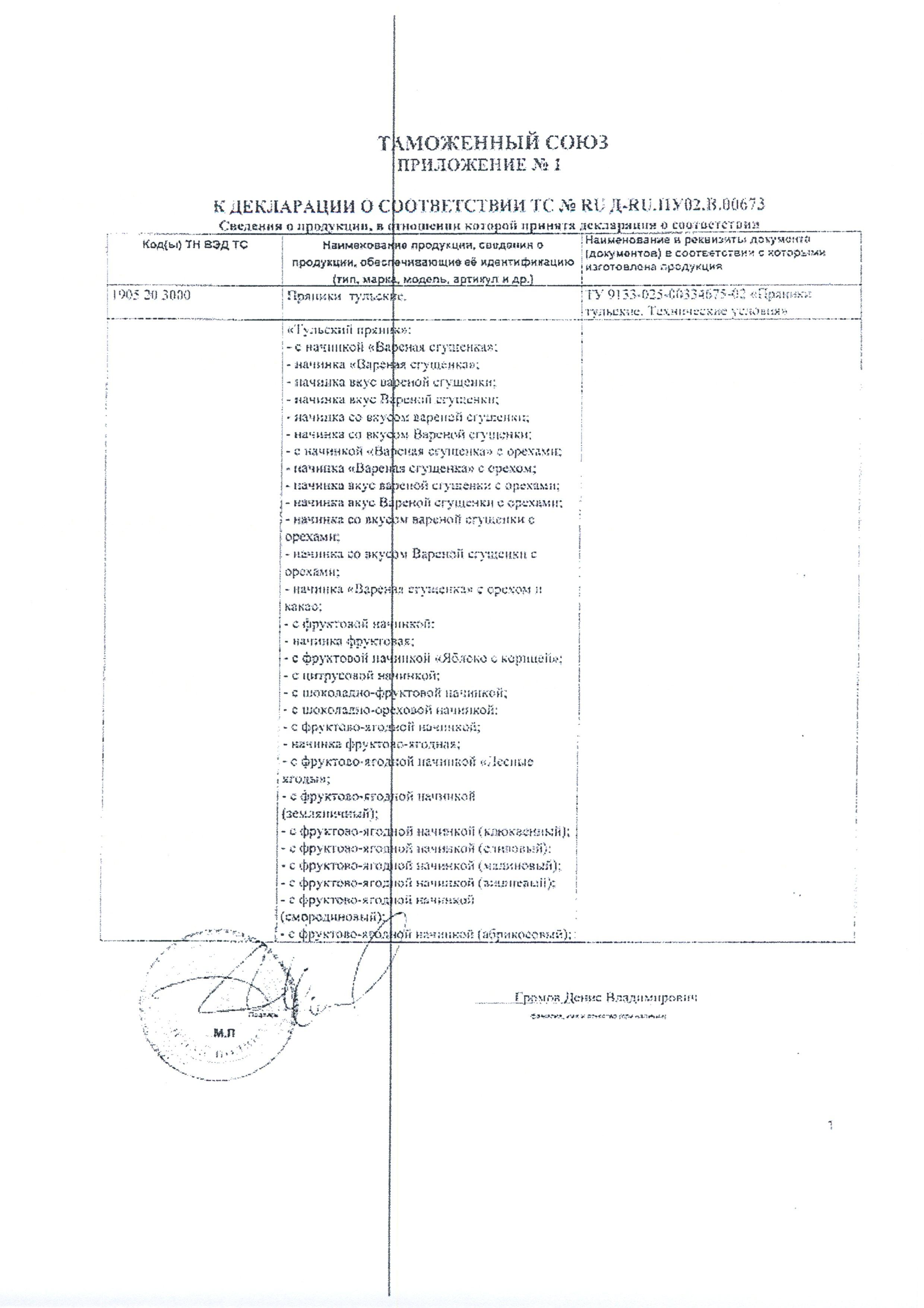 Традиционный «Тульский» пряник с фруктовой начинкой давно перестал быть простым сувениром и доступен к употреблению в любое время и в любом месте. Удобный формат и достаточно крупный размер сделали его любимчиком многих офисных сотрудников, которые приобретают его для обеденного чаепития во время трудового дня. Сладкий пряник с аппетитным ароматом идеально подойдет к чашке чая и кофе, а также составит интересную компанию сокам, питьевым йогуртам и многим другим напиткам.