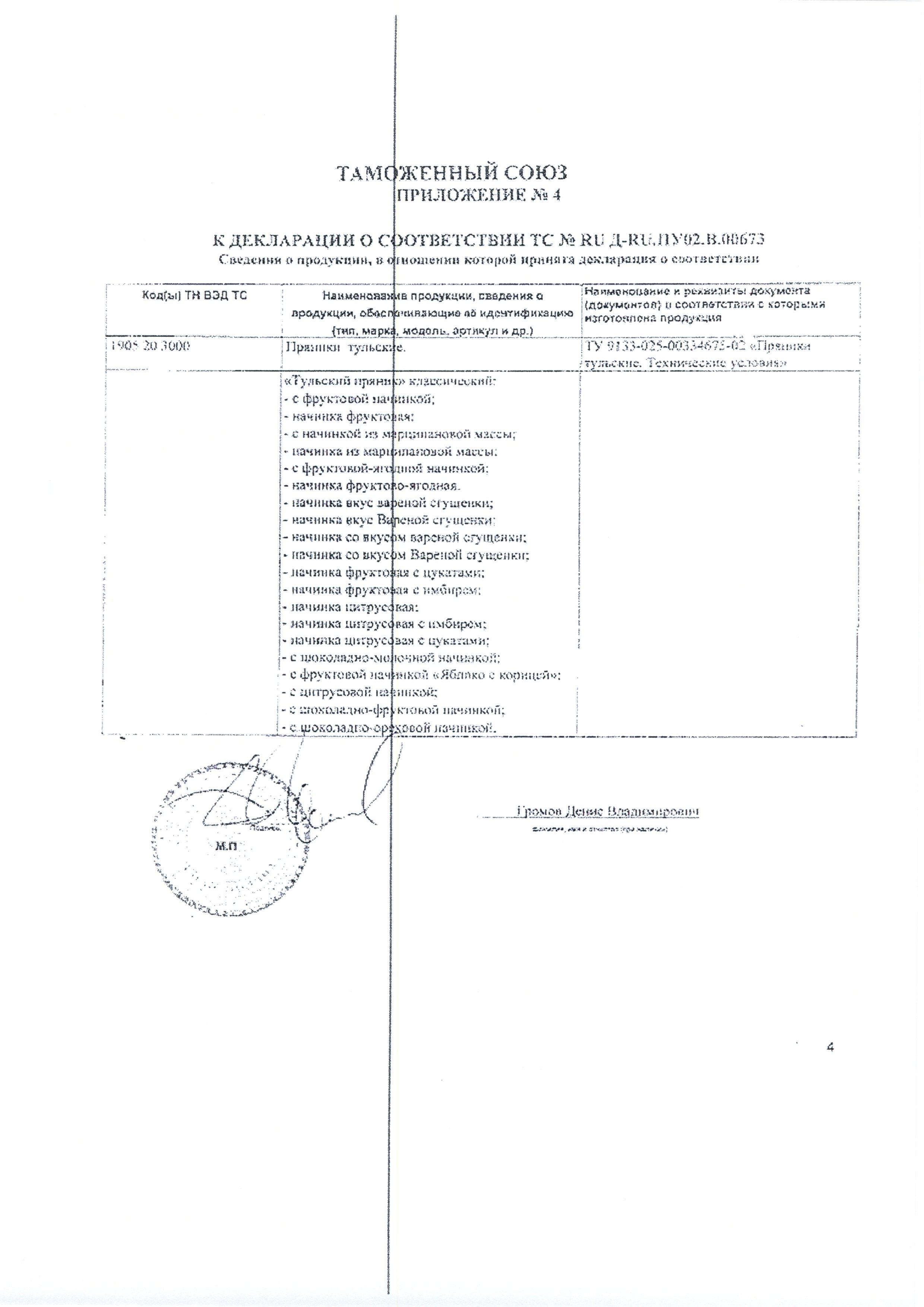 Традиционный «Тульский» пряник с вареной сгущенкой давно перестал быть простым сувениром и доступен к употреблению в любое время и в любом месте. Удобный формат и достаточно крупный размер сделали его любимчиком многих офисных сотрудников, которые приобретают его для обеденного чаепития во время трудового дня. Сладкий пряник с аппетитным ароматом идеально подойдет к чашке чая и кофе, а также составит интересную компанию сокам, питьевым йогуртам и многим другим напиткам.