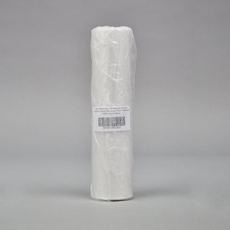 Пакеты фасовочные на втулке. Изготовлены из полиэтилена низкого давления. Плотность: 10 мкм. Размер: 25×40 см. В рулоне 250 пакетов.