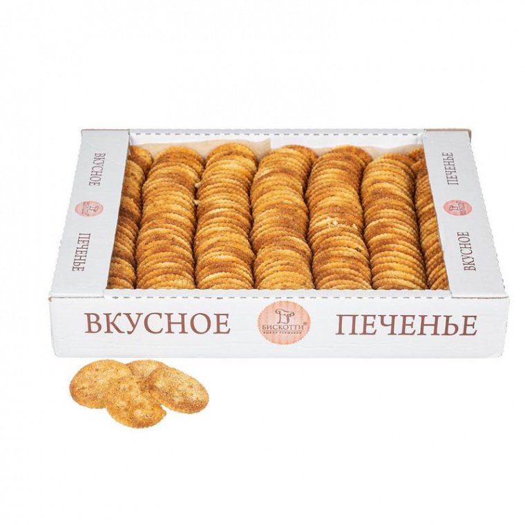 Печенье упаковано в фирменную картонную коробку с прозрачным верхом и плотными стенками. Коробка сохраняет их товарный вид во время транспортировки, а также является удобным вариантом для демонстрации в магазинах и пунктах питания. Не менее удобен такой формат для офисных коллективов и больших семей.