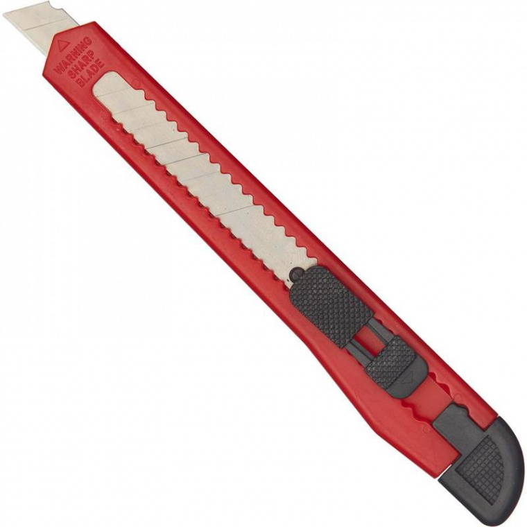 Канцелярский нож является простым в использовании, удобным и доступным инструментом. Активно используется в канцелярии. Корпус канцелярского ножа выполнен из пластика, система блокировки лезвий защелка. Выдвижное сменное лезвие, шириной 9 мм, можно установить на любую удобную длину, заменить в случае необходимости. Данная экономичная модель ножа оптимальна для резки бумаги, распечатывания корреспонденции и посылок.