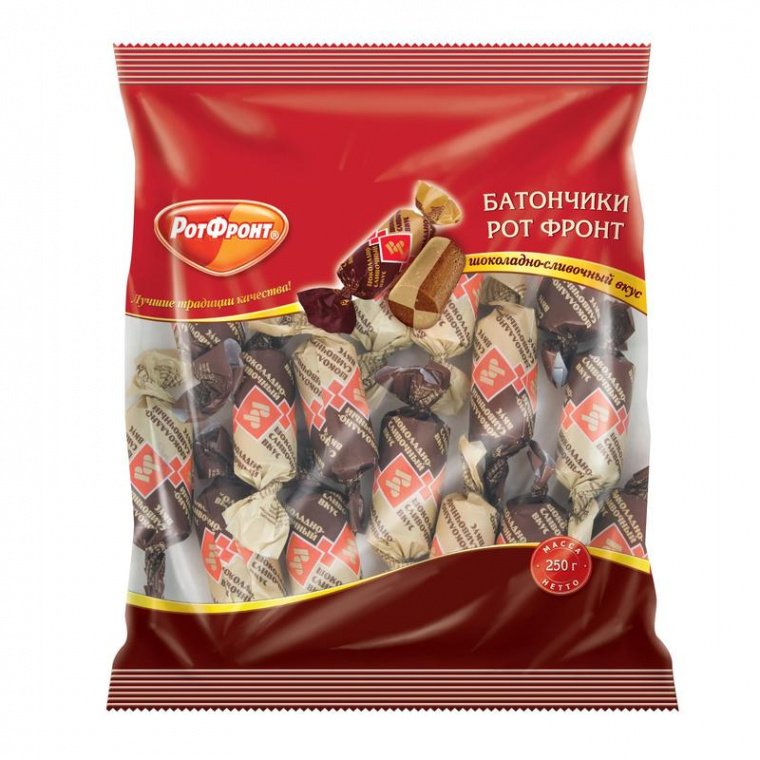 Батончики Рот Фронт производятся на известной одноименной кондитерской фабрике из натурального сырья. Конфеты имеют множество наград и самое главное, многочисленных поклонников. Сочетание новейших технологий и многолетних традиций производства позволяет добиваться высокого качества и изумительного вкуса продукции.