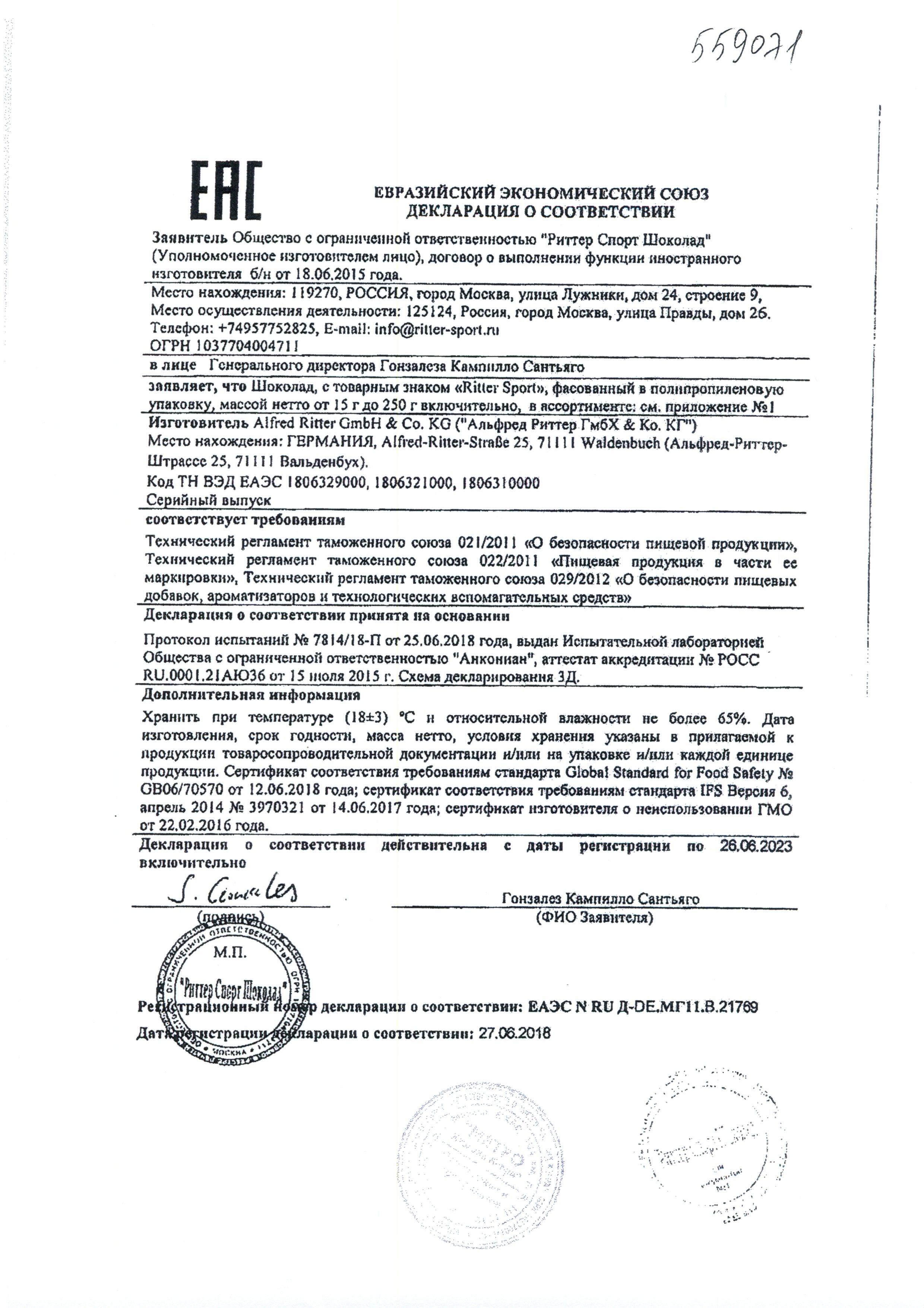 Более 100 лет изумительный шоколад Ritter Sport дает возможность наслаждаться безупречным вкусом и высшим качеством своих продуктов, которые создаются из отборных, высококлассных ингредиентов на современном оборудовании под тщательным контролем опытных специалистов, искренне увлеченных своим делом. Поклонники более 70 стран мира раз за разом возвращаются за любимым шоколадом, который однажды им полюбился.