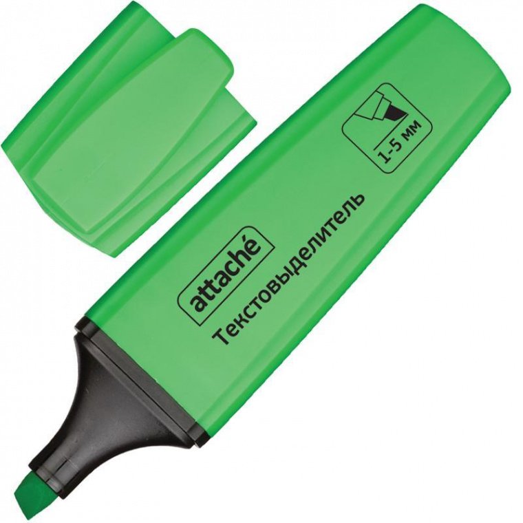 Текстовыделитель на водной основе в пластиковом корпусе, предназначенный для маркировки текста на бумаге любой плотности, цвет чернил: зеленый — соответствует цвету колпачка. Скошенный наконечник имеет толщину от 1 до 5 мм.