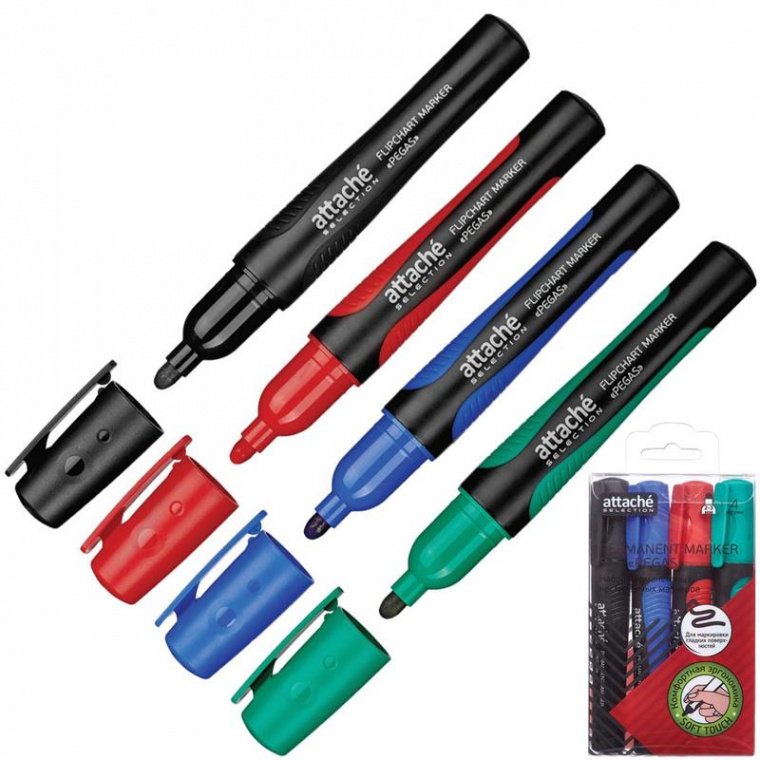 Набор маркеров перманентных Attache Selection Pegas (толщина линии 2-5 мм, 4 штуки в упаковке)