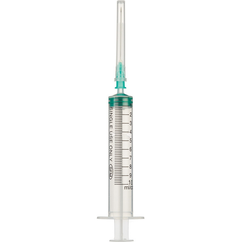 Шприц трехкомпонентный SFM 10 мл 21G (0.8x40 мм, 5 штук в упаковке). Предназначен для лекарственных инъекций. Шприц одноразовый с наконечником концентрического типа (международный стандарт ISO 7886-1). Материал корпуса - полипропилен. Корпус прозрачный. Уплотнитель поршня из термопластичного эластомера зеленого цвета. Уплотнитель поршня не содержит латекс, обработан силиконовой смазкой. Четкая контрастная градуировка способствует максимально точной дозировке. Насечки на упоре исключают скольжение пальцев в процессе инъекции. Форма и размер ободка вокруг корпуса обеспечивают удобство и надежность захвата и удержания шприца в момент использования. Прочное двойное стопорное кольцо предотвращает случайное выдергивание поршня в момент набора медицинского средства. Игла одета на шприц. Отдельная стерильная блистерная упаковка с отогнутым краем - плотная медицинская бумага и прозрачная пленка (состав пленки - полиэтилен/полиамид). Упаковка вскрывается без образования бумажной бахромы. Нетоксично, апирогенно. Стерилизация - этиленоксид. На корпусе шприца несмываемая шкала с ценой деления 1 мл. В упаковке - 5 штук. Тип наконечника: Luer. Срок годности: 5 лет.