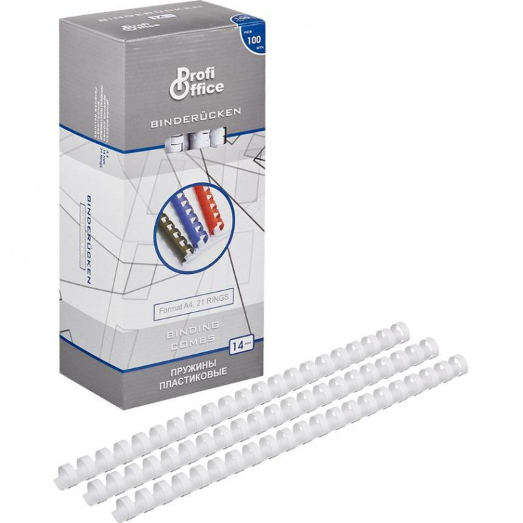 Пружины для переплета пластиковые ProfiOffice 14 мм белые (100 штук в упаковке)