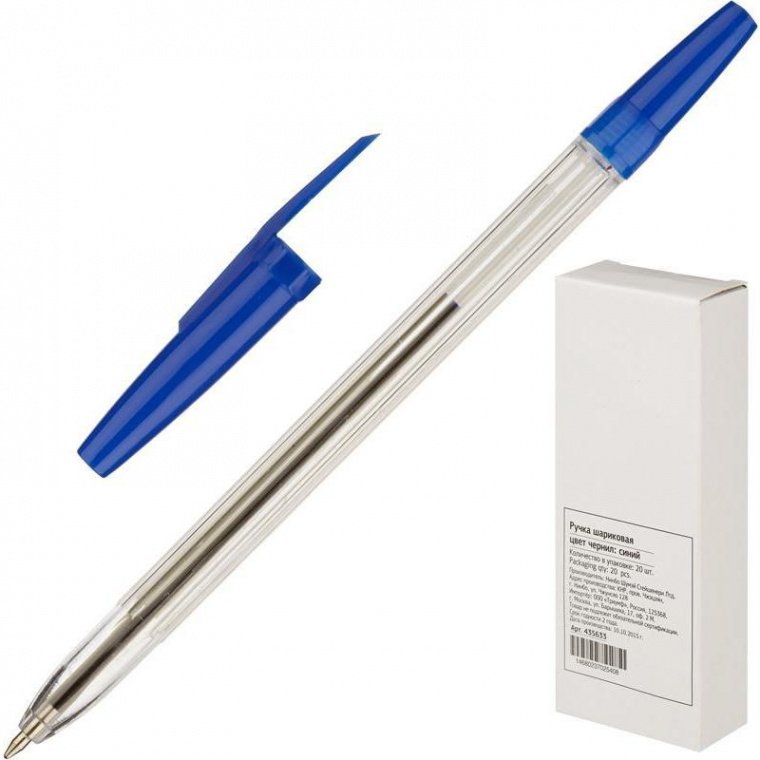 Ручка шариковая со сменным стержнем. Модель в пластиковом прозрачном корпусе. Стержень шариковой ручки с чернилами синего цвета, встроенный шарик позволяет оставлять четкую линию толщиной 0,5 мм. Ручка шариковая снабжена вентилируемым колпачком. Стержень заполнен чернилами на 60%.