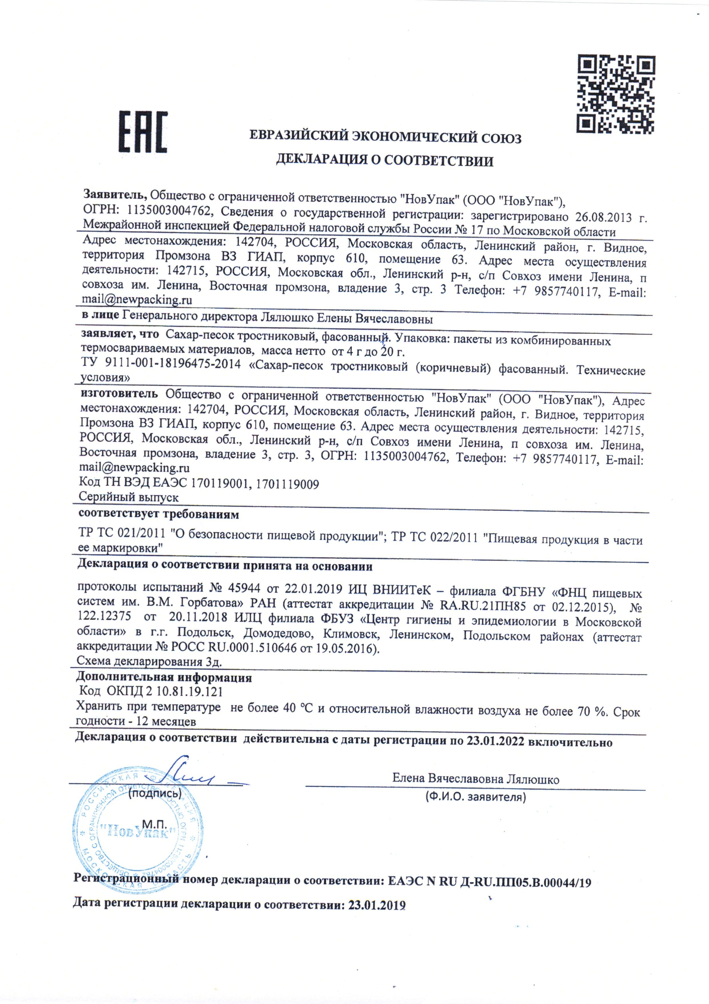 Сахар тростниковый порционный по 5 гр. (Удобно, гигиенично, эстетично)