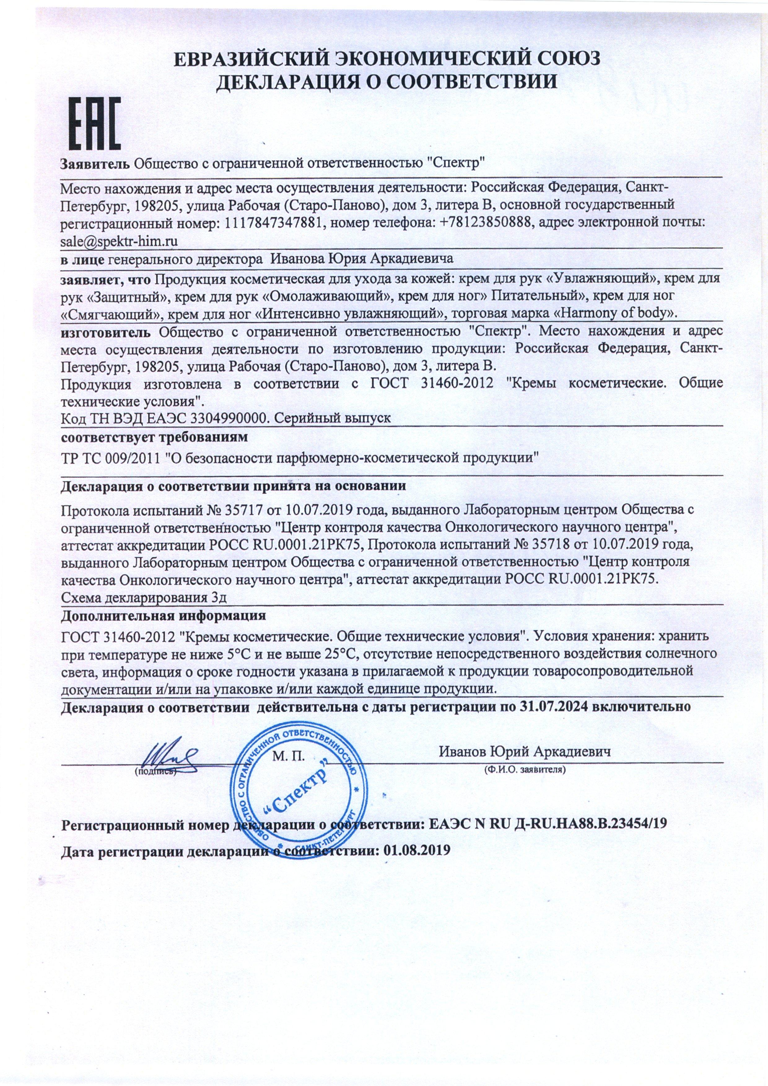 Сертификат на товар - Крем для рук Harmony of body Увлажняющий 75 мл